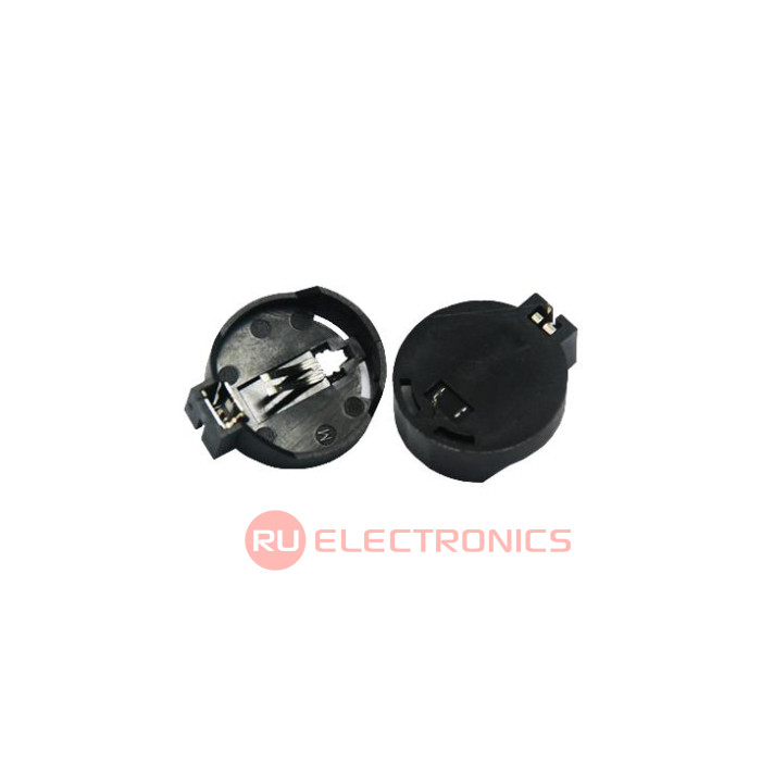 Держатель для элементов питания CR2032; Ø20 мм; горизонтальный; монтаж в отверстия; 22x24 мм; шаг 20 мм