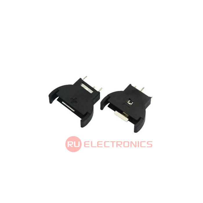 Держатель для элементов питания CR2032 (диаметр 20 мм), вертикальный монтаж в отверстия, габариты 23.2x24х6 мм, расстояние между выводами 20 мм