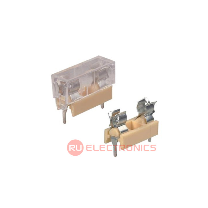 Примечания PCB Fuse Holder,For Fuse 5.2×20mm,With PC Casing,Rating Voltage 250V,Rating Current 6.3A. , Длина предохранителя 20 мм, Диаметр предохранителя 5.2 мм, Монтаж Сквозные отверстия