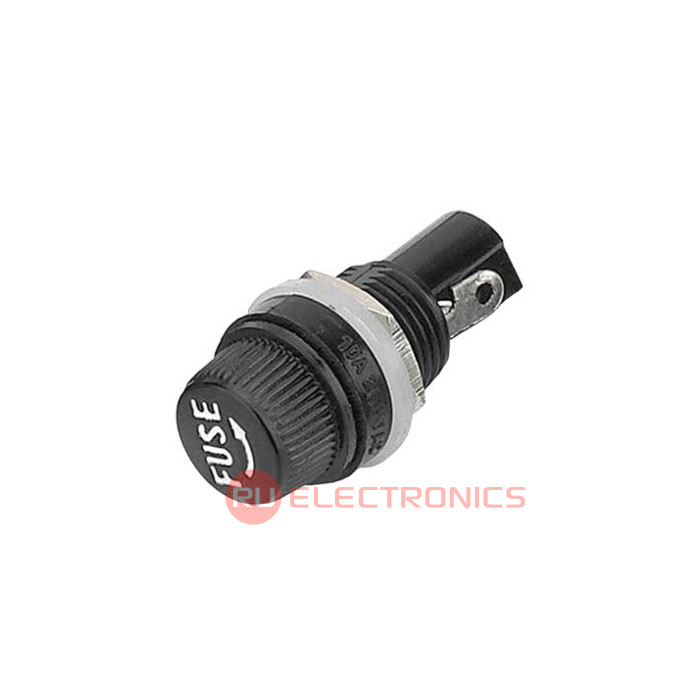 Примечания Fuse Holder For Round Thread Panel Mount,For Fuse 5.2×20mm,Rating Voltage 250V,Rating Current 10A. , Длина предохранителя 20 мм, Диаметр предохранителя 5.2 мм, Монтаж на панель