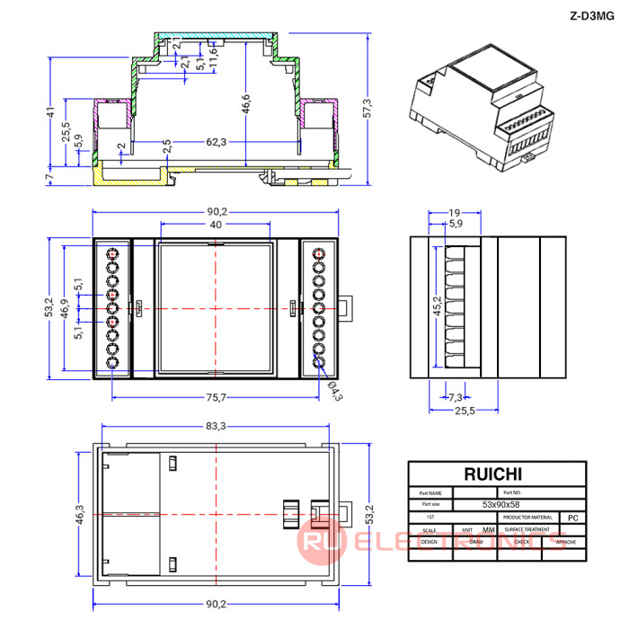 Пластиковый корпус RUICHI Z-D3MG для монтажа на DIN-рейку — это надежное решение для размещения электронных компонентов в системах автоматизации и электроники. Выполненный из прочного светло-серого поликарбоната, корпус отличается высокой устойчивостью к механическим воздействиям, температурным перепадам и внешним воздействиям. Удобная конструкция обеспечивает легкую установку на DIN-рейку, а универсальный размер подходит для большинства стандартных устройств. Идеален для использования в распределительных щитах, системах управления и других промышленных или бытовых проектах.