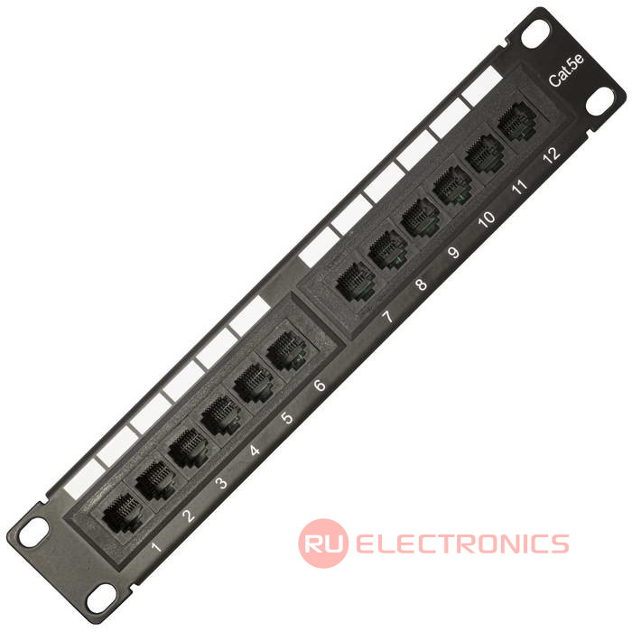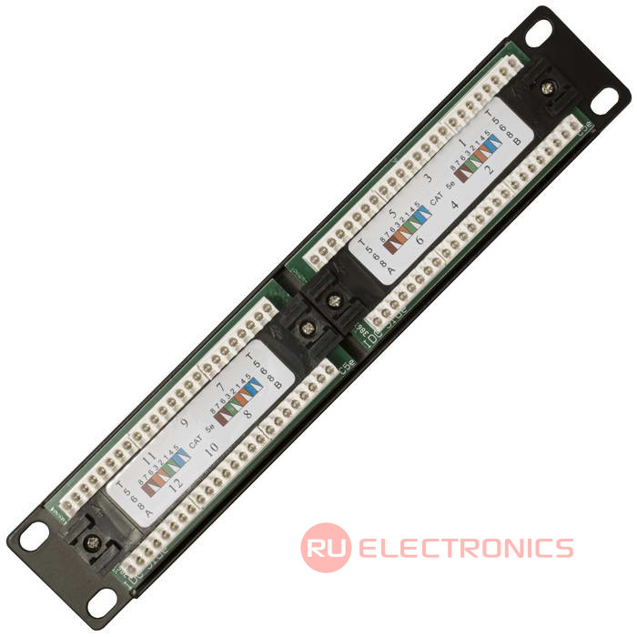 Патч-панель RUICHI RH-PP1U12U5E предназначена, для коммутации активного сетевого оборудования с портами рабочих компьютеров (или другого оборудования), а также для использования в паре с другой патч-панелью (так называемое двойное представление портов), где первая представляет порты активного сетевого оборудования, а вторая – порты присоединяемых устройств (компьютеров, телефонов, сетевых принтеров и т.п.). Разъемы пронумерованы, имеют площадки для дополнительной маркировки. Контакты, расположенные на обратной стороне также имеют цифровую и цветовую маркировку.