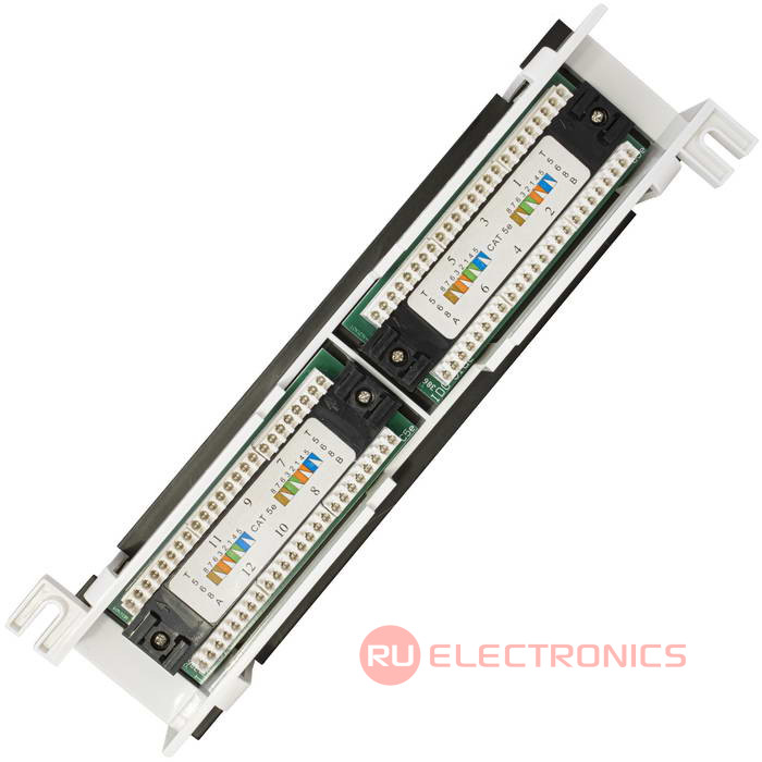 Патч-панель RUICHI RH-PPW1U12U5E предназначена, для коммутации активного сетевого оборудования с портами рабочих компьютеров (или другого оборудования), а также для использования в паре с другой патч-панелью (так называемое двойное представление портов), где первая представляет порты активного сетевого оборудования, а вторая – порты присоединяемых устройств (компьютеров, телефонов, сетевых принтеров и т.п.). Разъемы пронумерованы, имеют площадки для дополнительной маркировки. Контакты, расположенные на обратной стороне также имеют цифровую и цветовую маркировку.