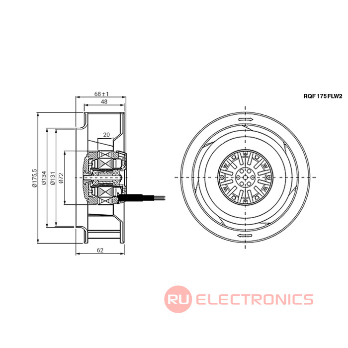 Вентилятор центробежный AC RUICHI RQF 175FLW2, 220В, 2400/2350 об/мин, 259/269 м3/ч, 55/53Вт