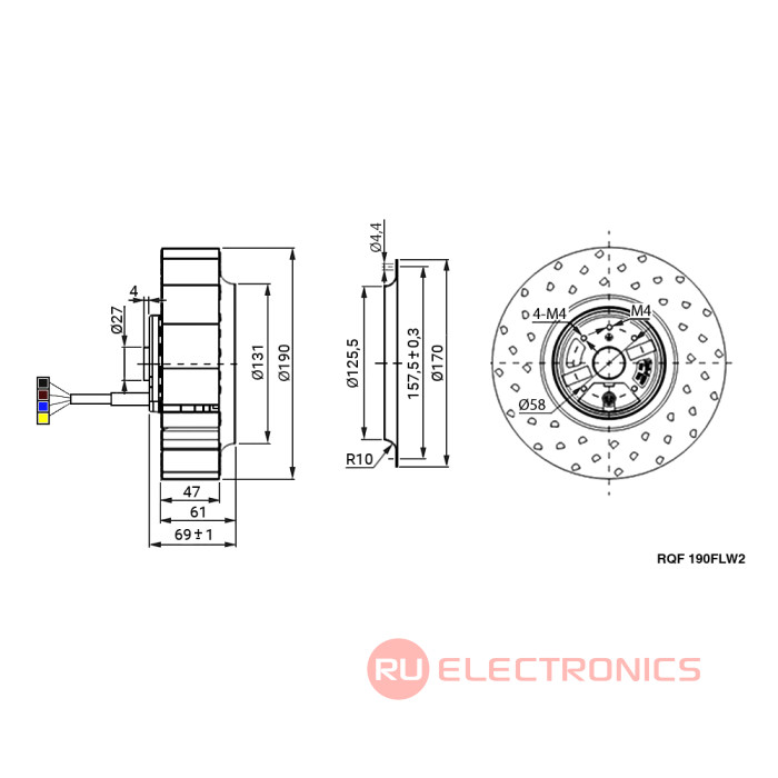 Вентилятор центробежный AC RUICHI RQF 190FLW2, 220В, 2600/2950 об/мин, 302/338 м3/ч, 80/88Вт